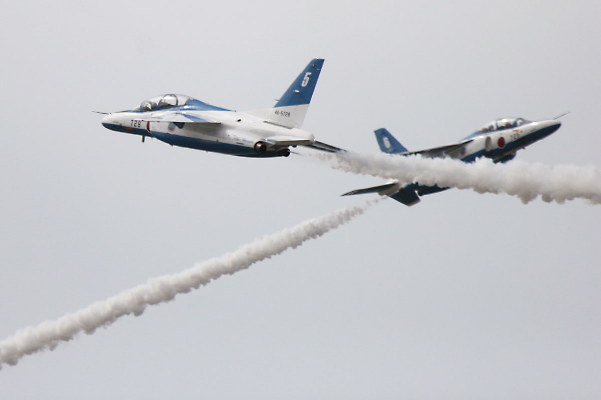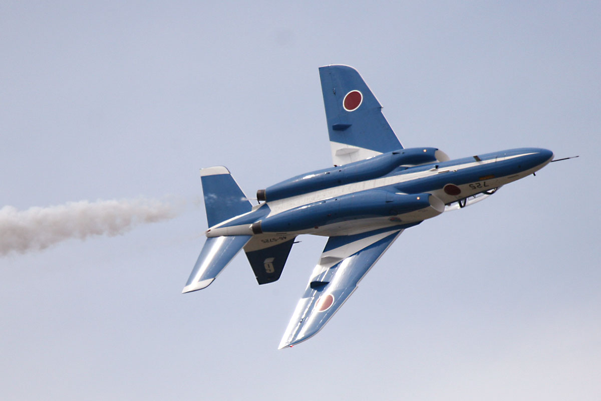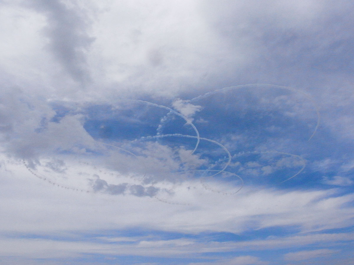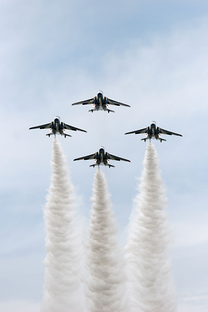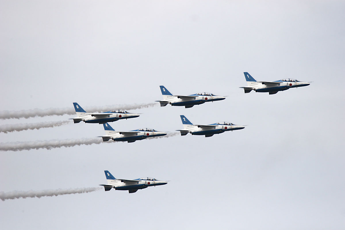 雲があってブルーは曇天用の第3区分演技。フォーメーションのダイヤモンドテイクオフはなく順次離陸であった |