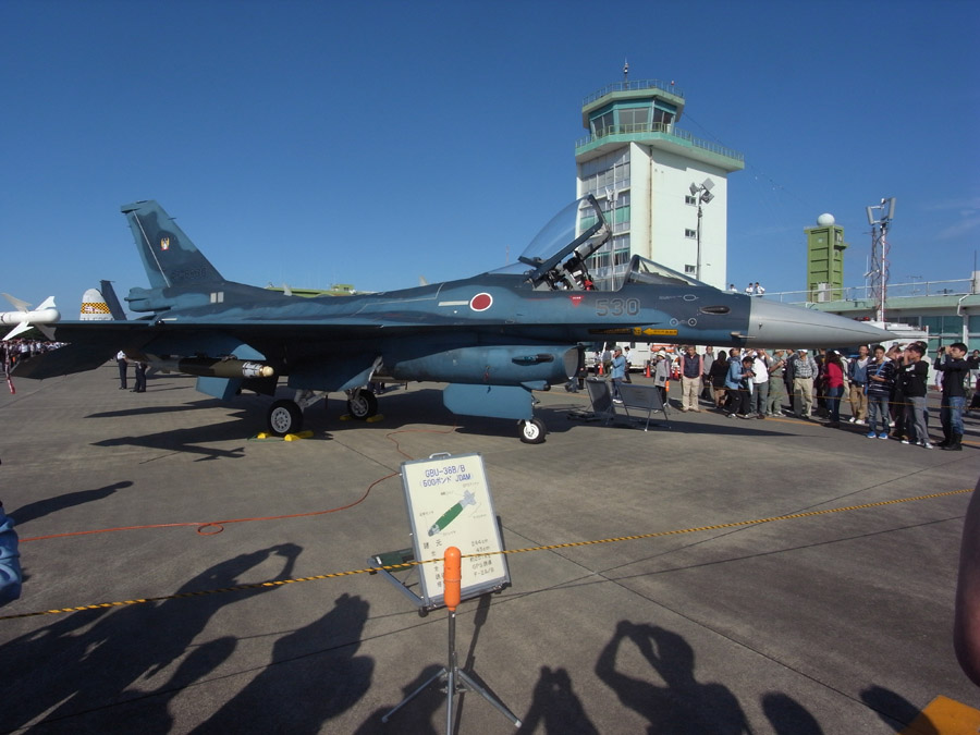 地元浜松の第1術科学校で整備用教材になっているF-2は爆装展示 |