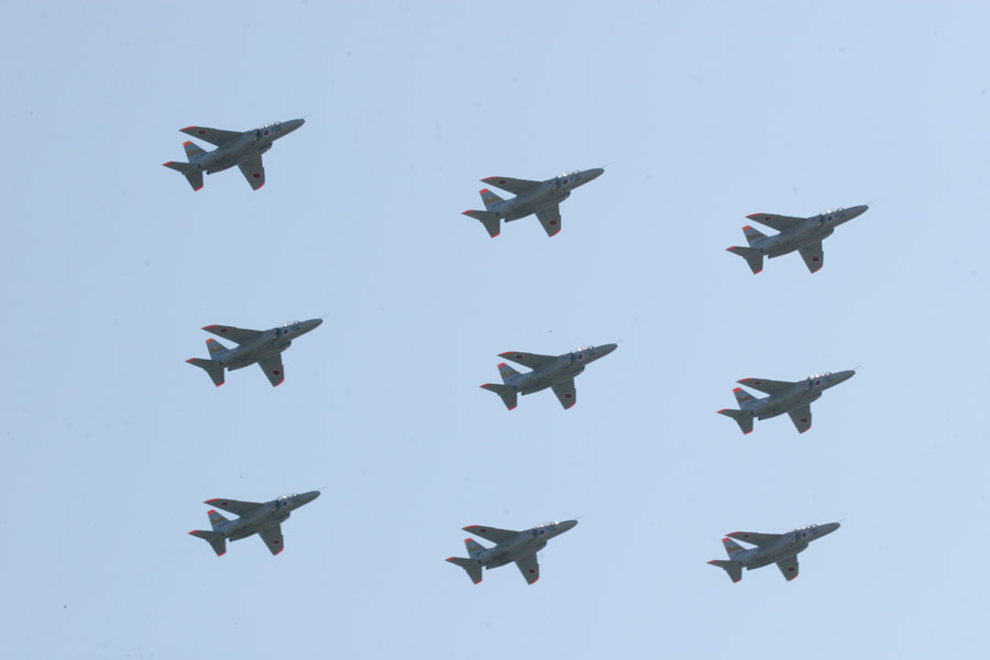 第11飛行教育団のT-7初等練習機。 浜松から少し東にある静浜基地から飛来 |