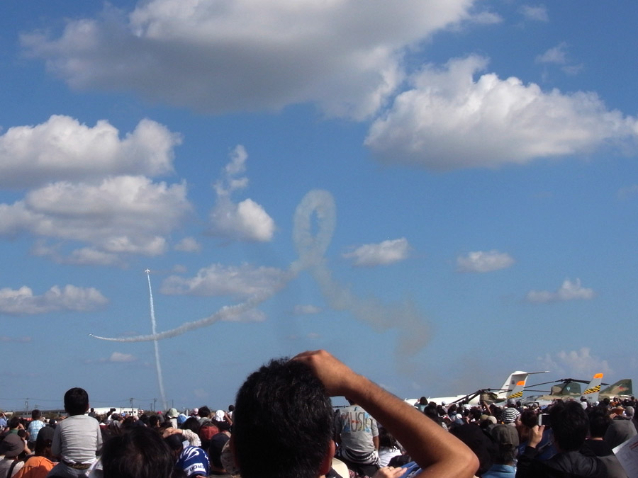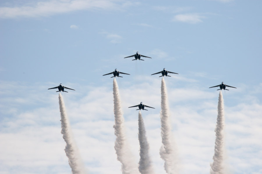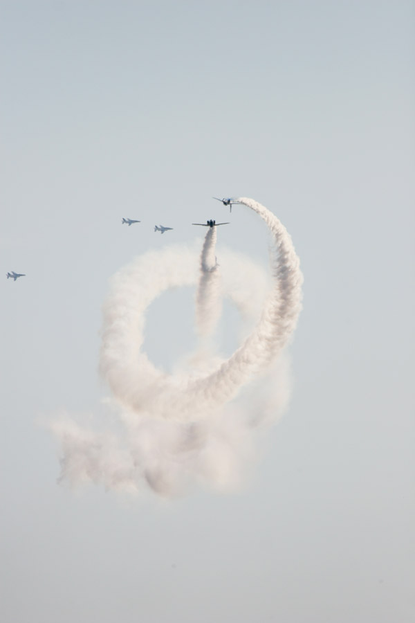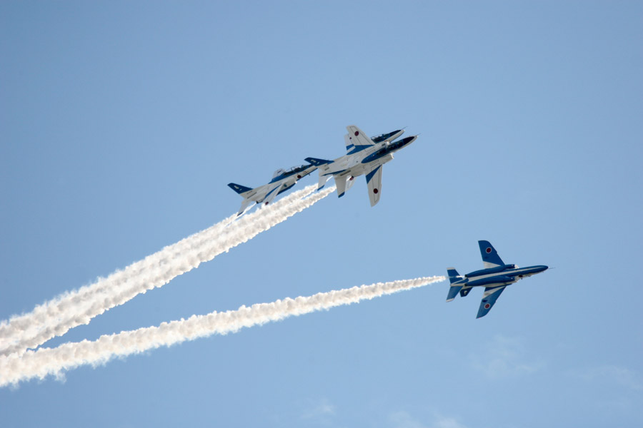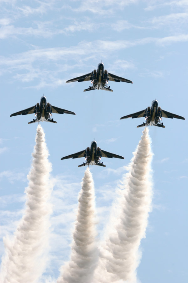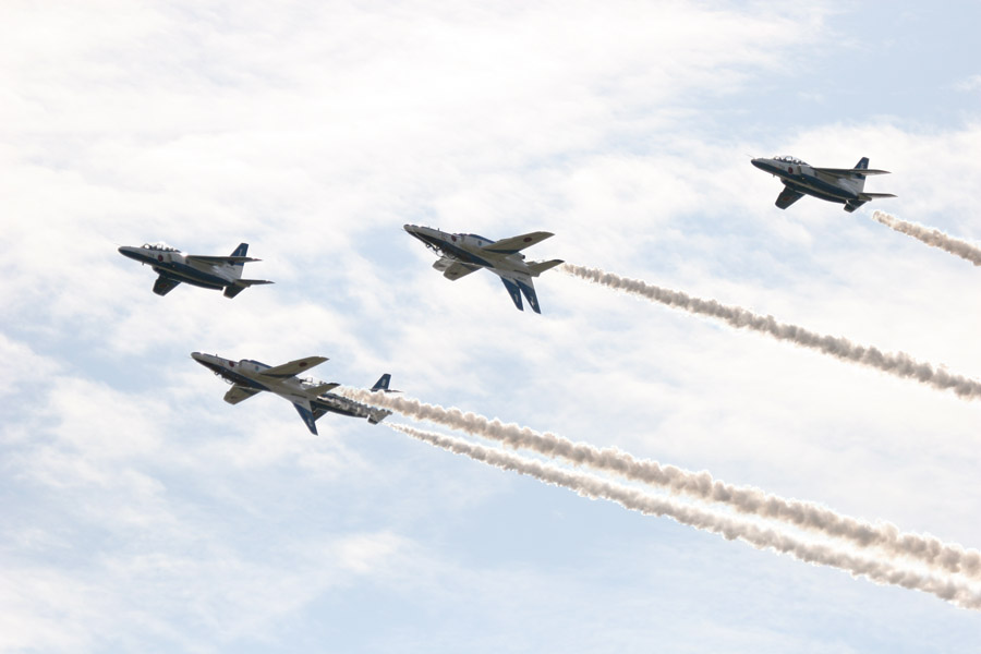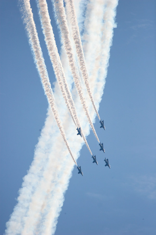 ブルーの編隊が離陸のすぐあとぐるっと回って戻ってくるところ |