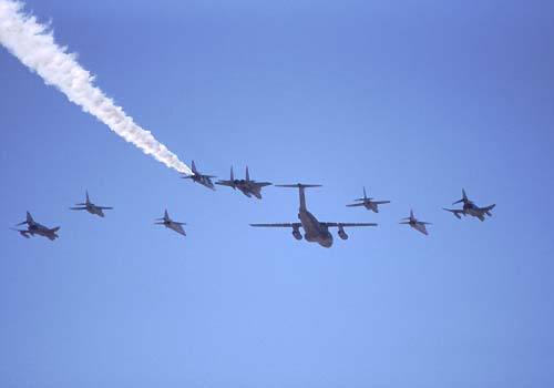 異機種大編隊。装備機種が多い岐阜ならではの科目 |