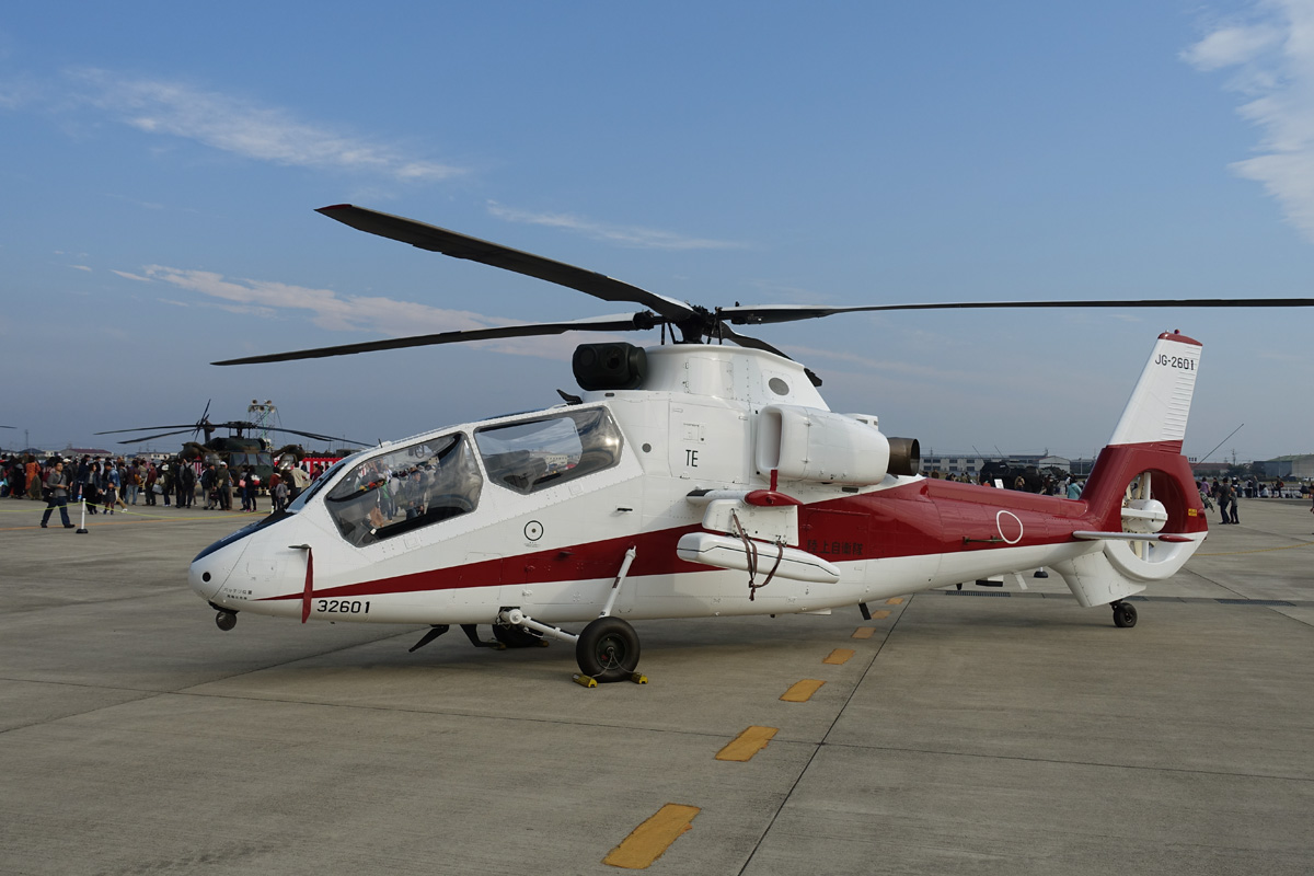 地上展示されていた川崎OH-1の試作1号機、愛称はオメガだそうで |