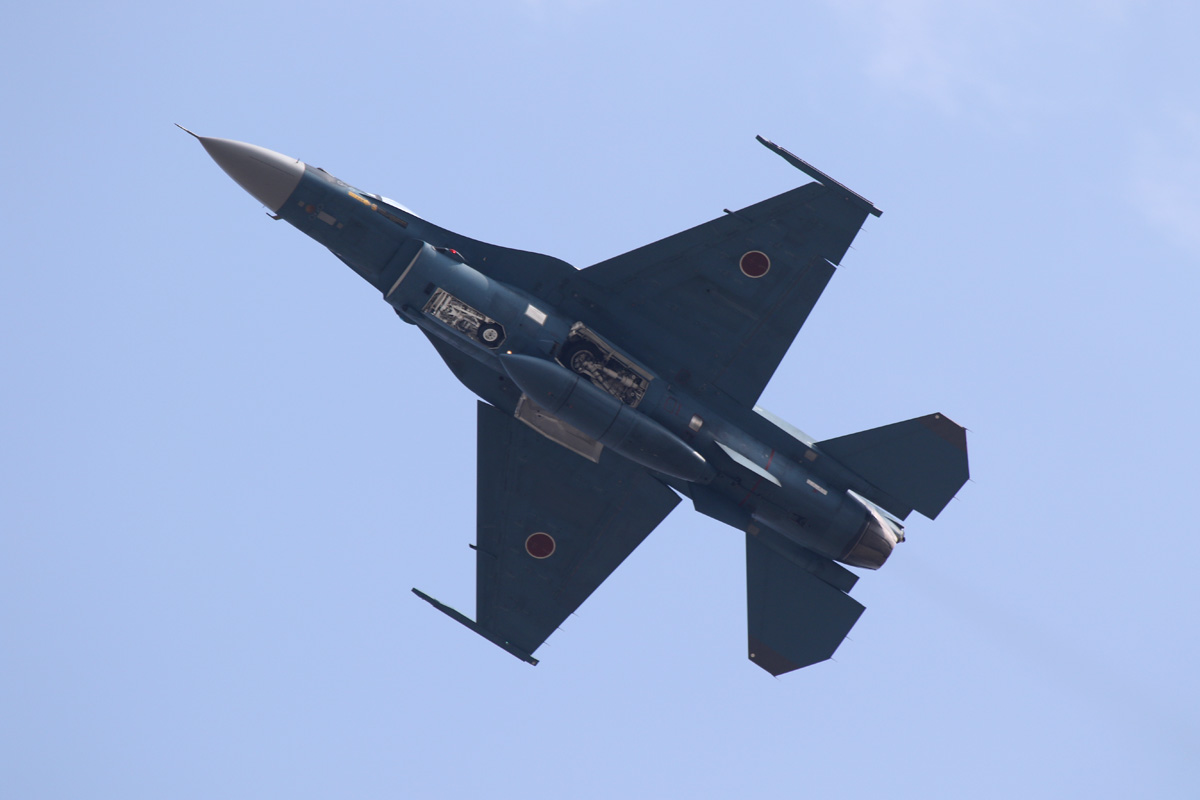 これも岐阜基地から来たF-2A。下げてた脚を畳むところで収納状態が良く判る |
