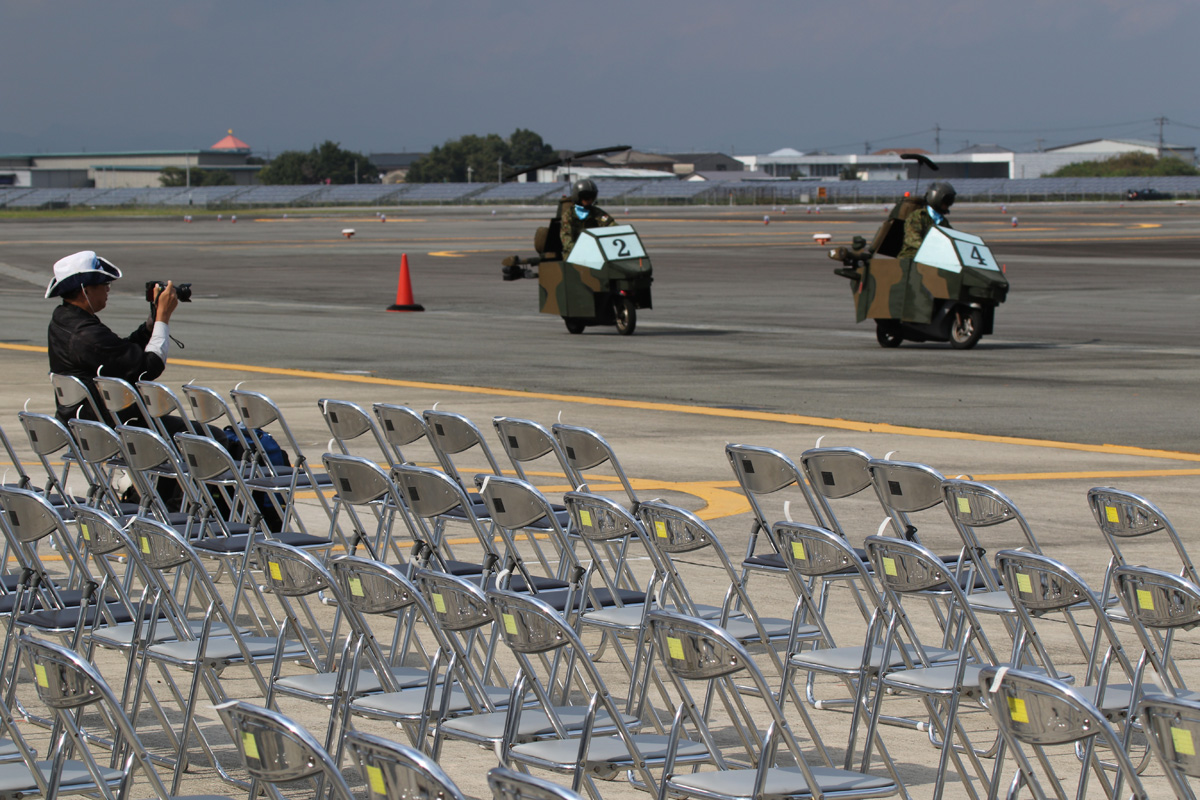 レインボーのデモが終わって皆さん退場しちゃった来賓席で1人残ってハヤテジュニアを撮る紳士 |