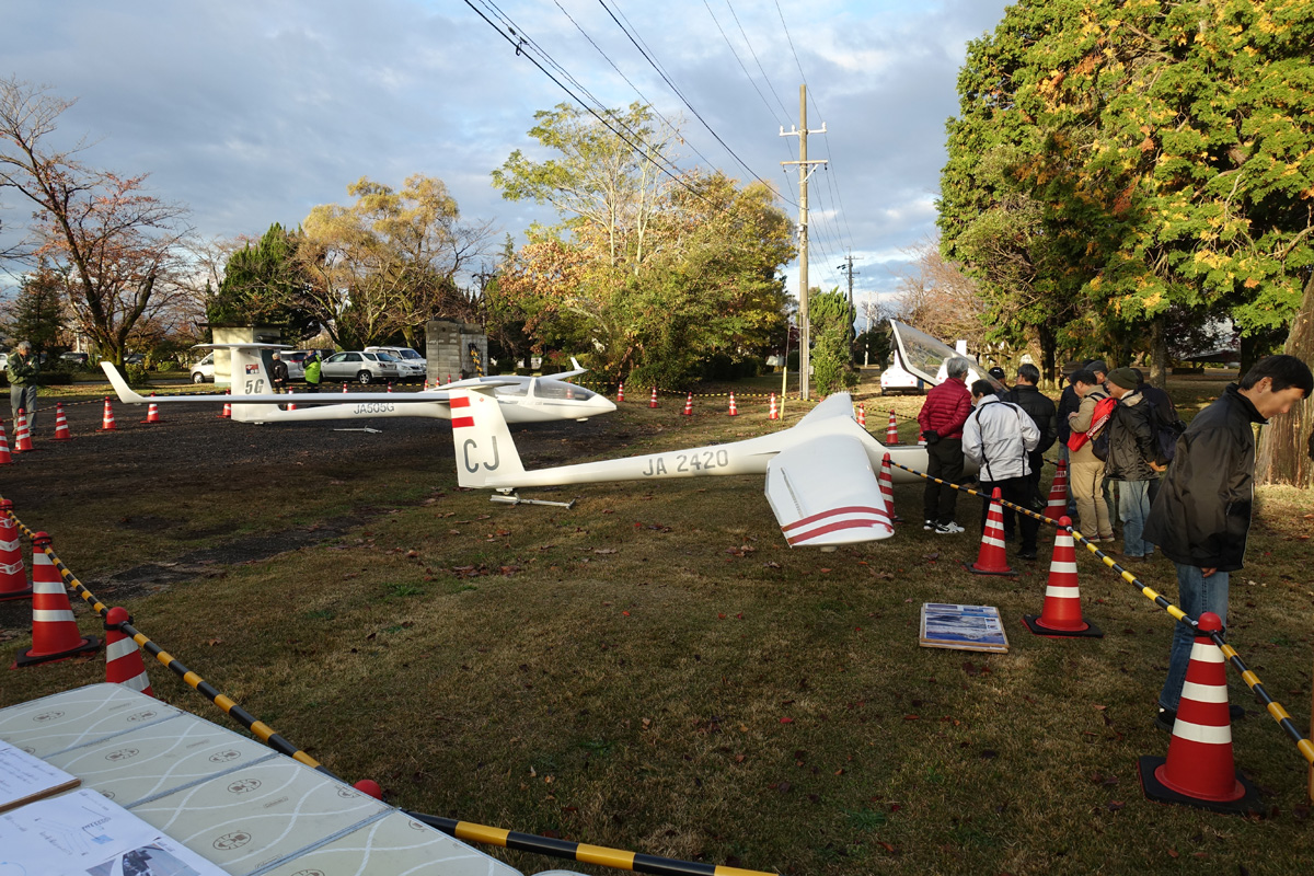 デモフライトが予定されていた滑空機、エランDG-300と同DG-505 しかし天候不調でデモはお流れ |
