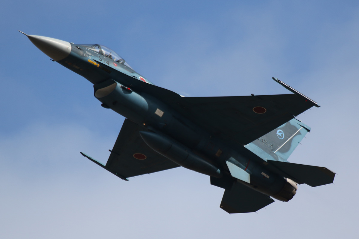 飛実団の朝のデモで飛んだF-2A。この時はまだ空が青い |