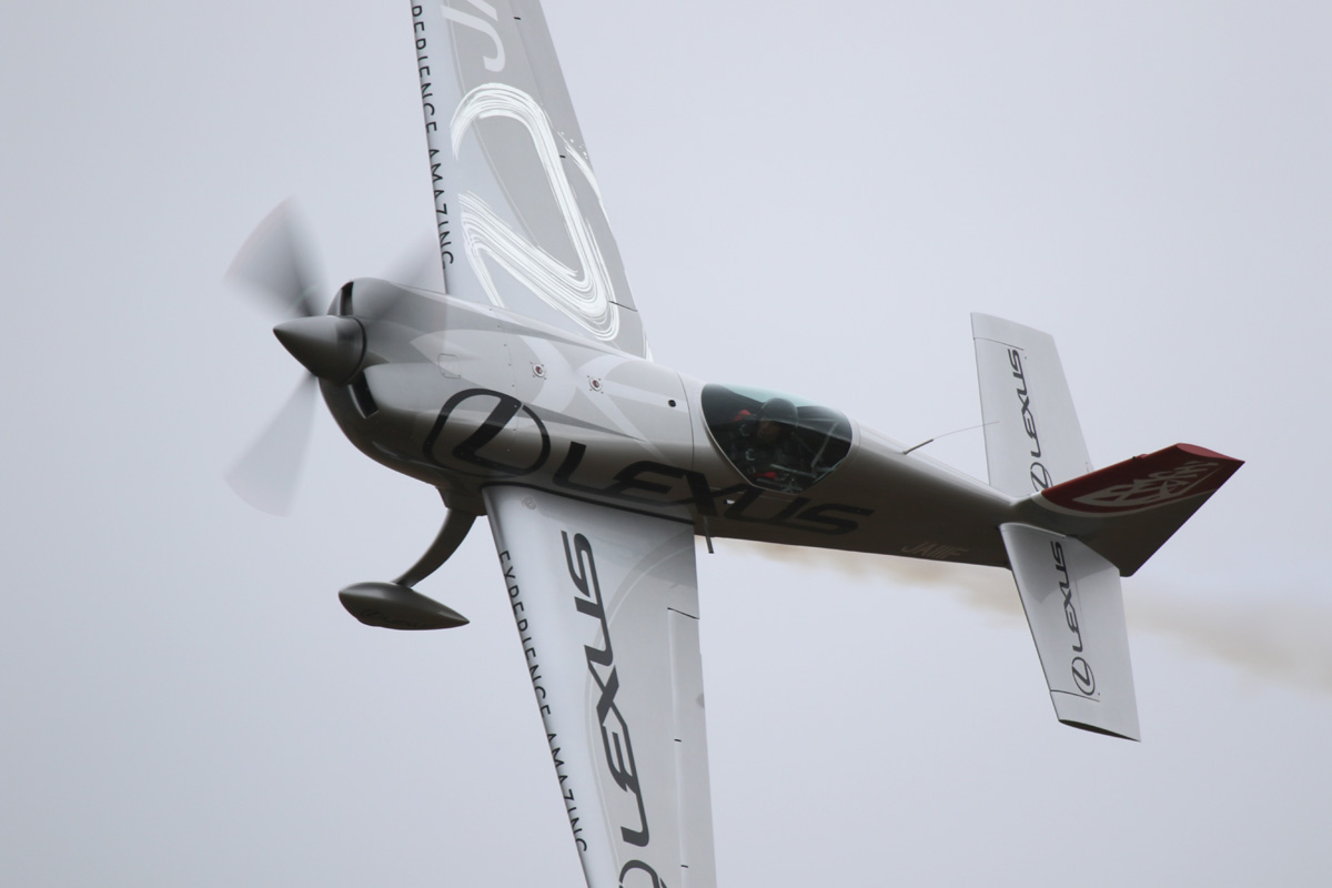 乗機はExtra300。ブルーはアクロ出来ない天気でもエクストラは平気 |