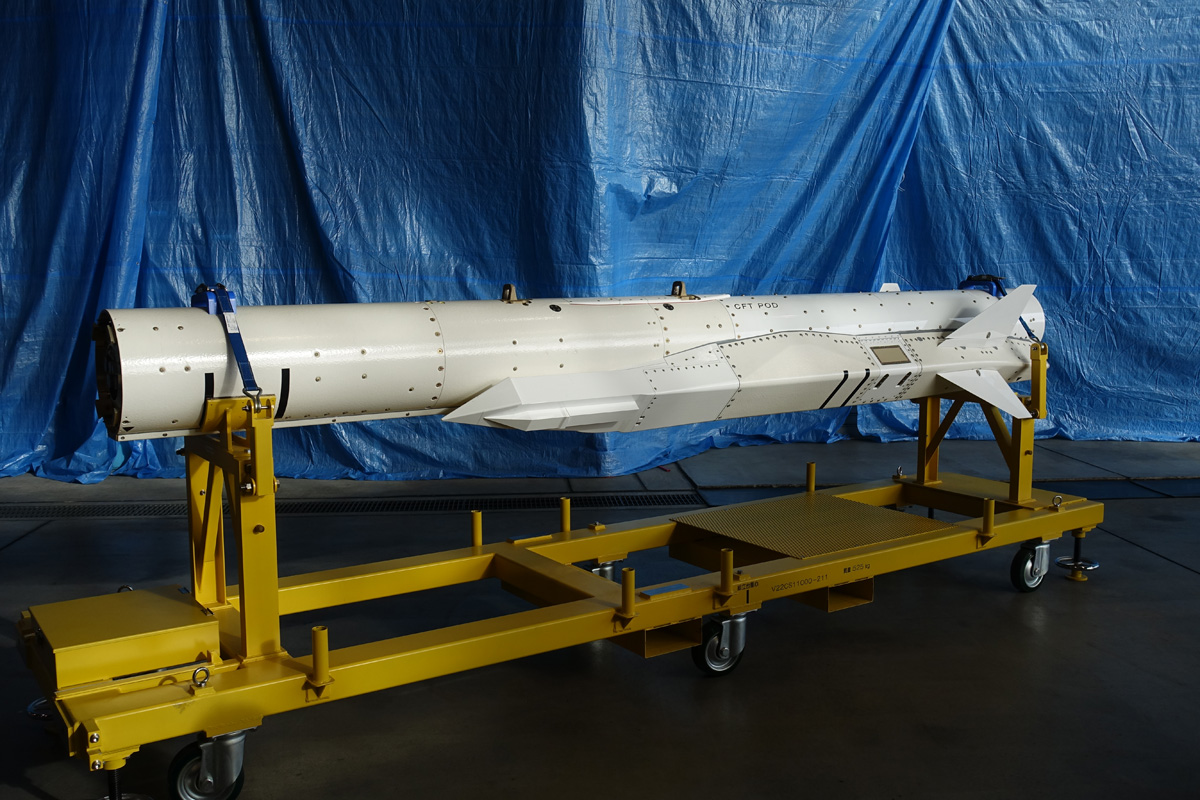 母機に吊したままミサイルの飛翔を模擬することで繰り返し試験の出来るXASM-3用CFTポッド |