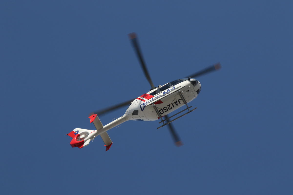 今年もやっぱり年明け3月開催の小牧祭。 ゲート前開門待ちの時に飛び立つのが見えたドクターヘリのEC135 |