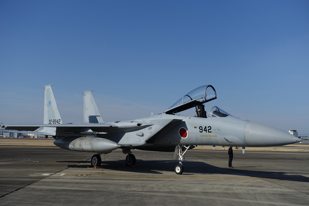 岐阜からの応援組のF-15J。 近代化改修機なので空気取入口の横にアンテナがぽっこりしている |