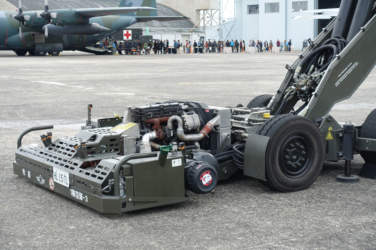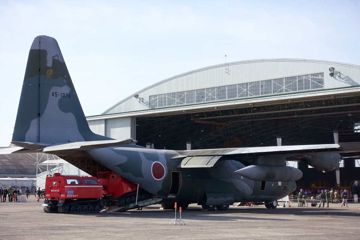 全国に一両のみ配備、いざと言うときに小牧から空輸しますってんでC-130Hへの積載をデモ |