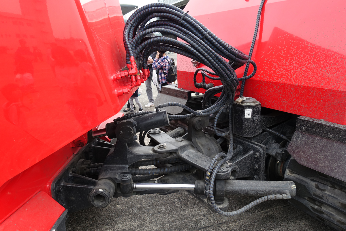 荷台が上がるとターボ過給機付きのエンジンが露出する作り |