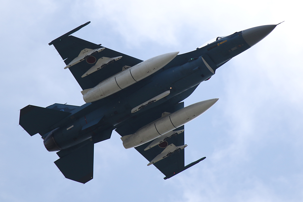 岐阜の飛行開発実験団のF-2。 洋上迷彩の機体にパイロン/増槽は白というのは飛実団ならでは |