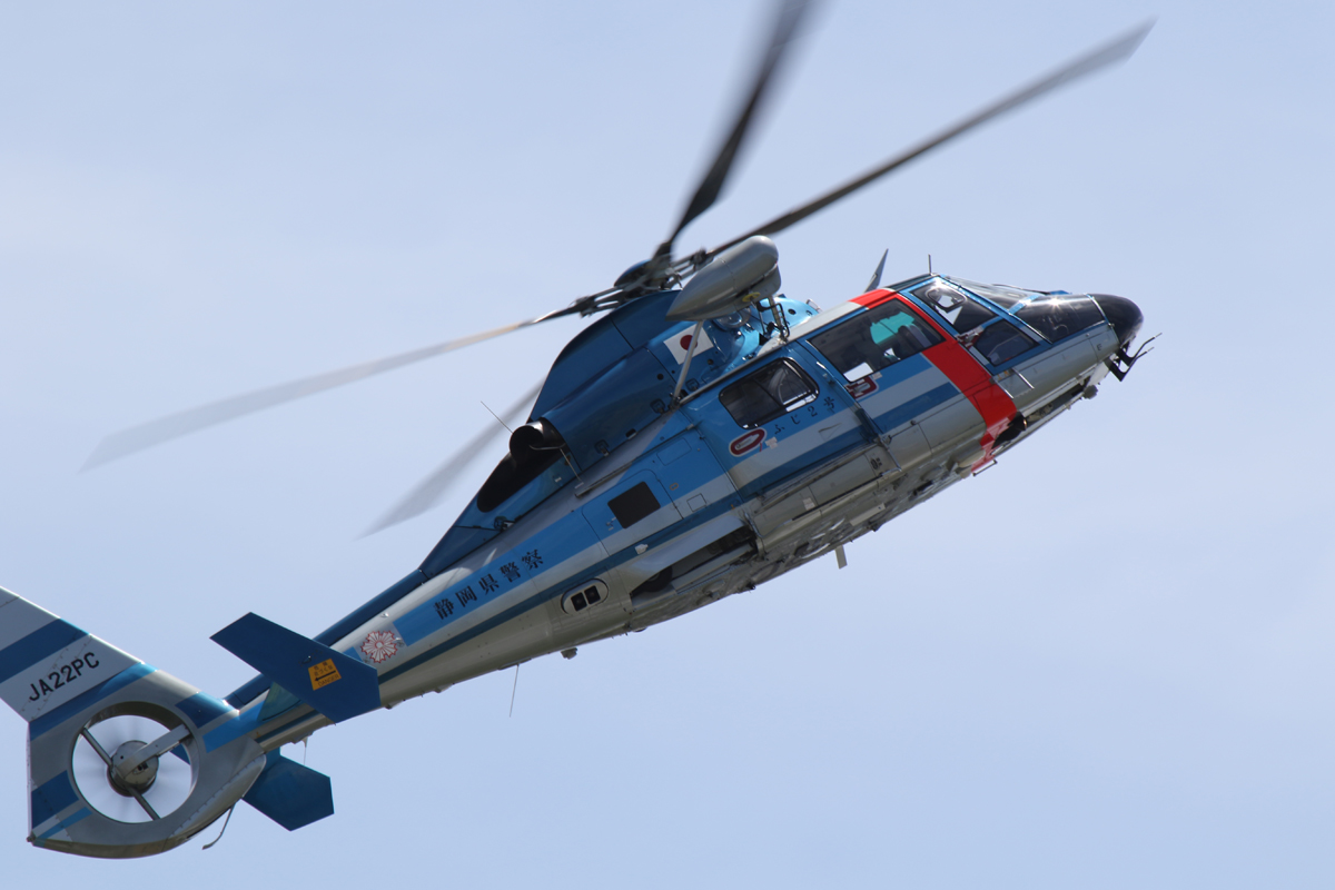 静浜基地に同居の県警航空隊AS365N3ドーファン。全体的に低調な静浜のデモ飛行だけどこの機だけは今年も頑張っていた |