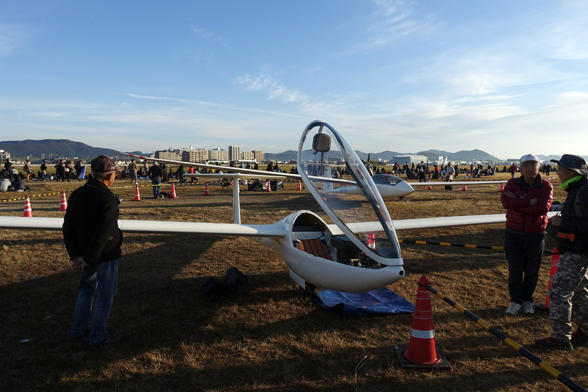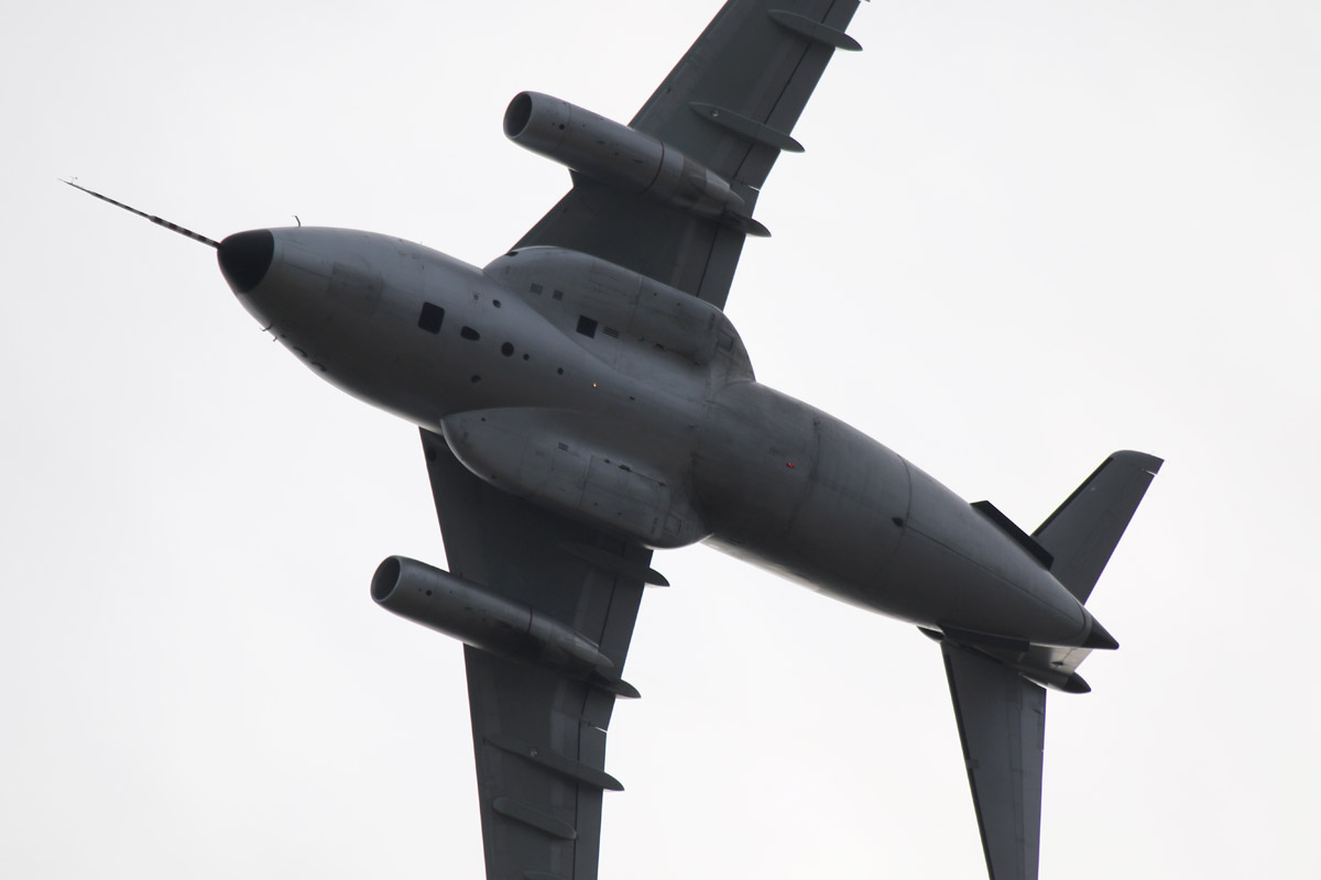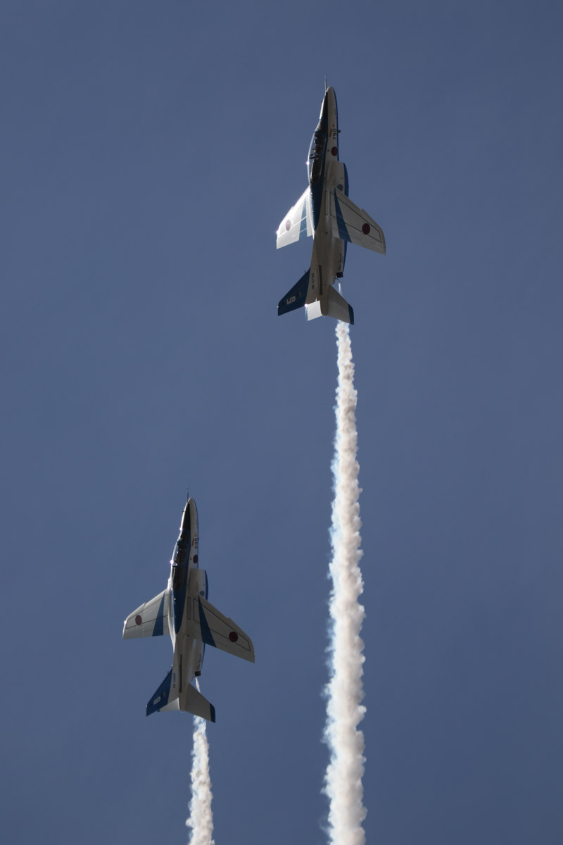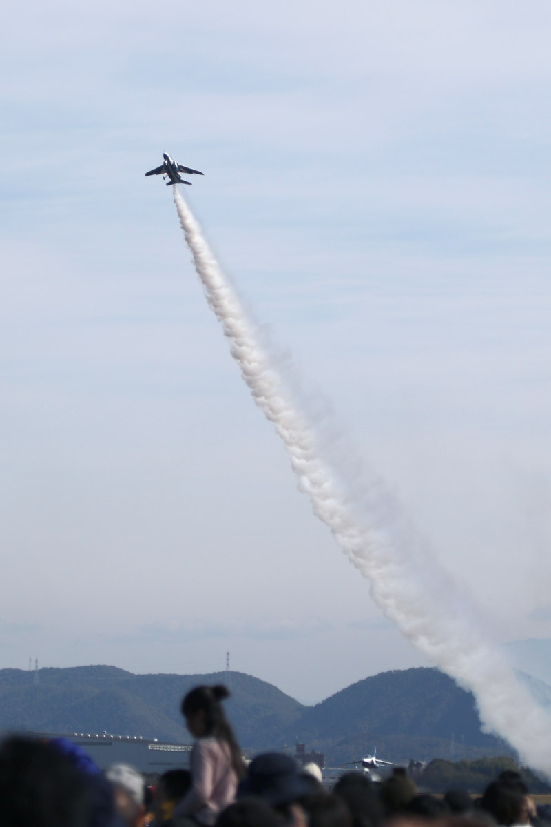基地南側の公開エリアからの撮影なのでソロの2機がほぼ真上を通過する |