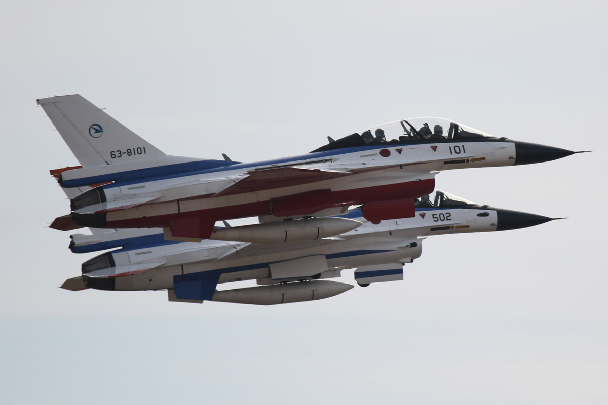 午後のデモフライトのために編隊離陸するXF-2AとXF-2B |
