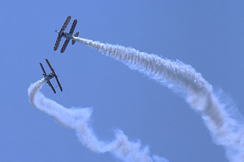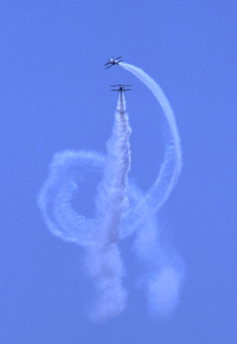 これも2機で幅が広がった演技のひとつ、コークスクリュー |