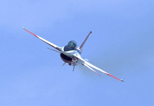元になったF-16から広げられた翼幅が良く判る角度 |