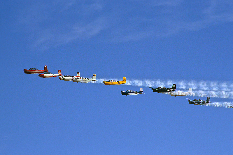 色とりどりなT-28の編隊。期間中は常に何かが飛んでレースやデモフライトが行われるRENOなので、他にも色々あったのですが紹介しきれません |