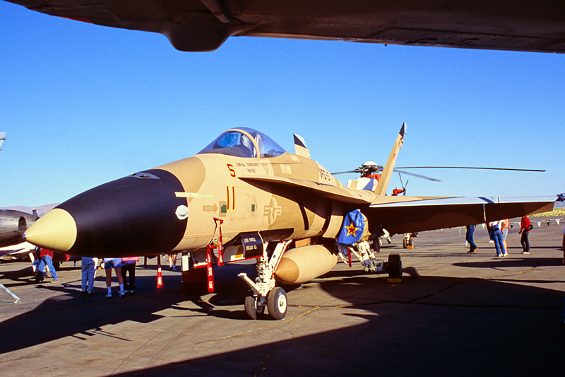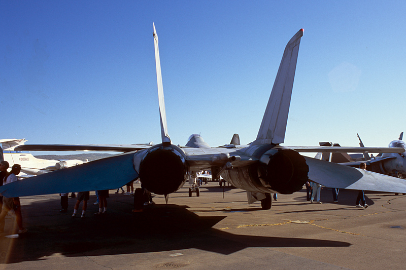 F-14のF-110エンジン搭載型、A+またはB、もしくはD型(っておい) 特に綱とかは張ってなかったので機体の下にも入り放題 |