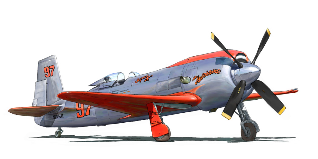 #97は目立った成績も残せないまま姿を消した訳ですが、小さな機体に無理して巨大なエンジンを装備した姿はレーサーならではの魅力に溢れています。低高度でレースが行われるリノで高空用装備であるターボコンパウンドの有効性とか、短い脚のお陰で極端に切り詰めたプロペラの馬力吸収とか、疑問もありますけどね。