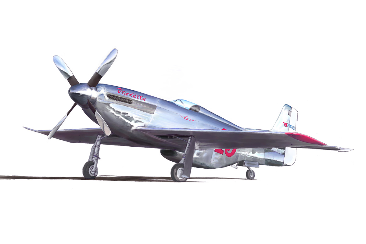 1970年代からストック状態のP-51D #19"Lou IV"でリノに参戦していたジョン・ディリーが、RENO'85から#19のレースパイロットを務めていたトム・ケリーと共に3年掛かりの大改造を経てRENO'88に持ち込んだのがこの機体、"Vendetta"。 #19のレースナンバーは流用されています。