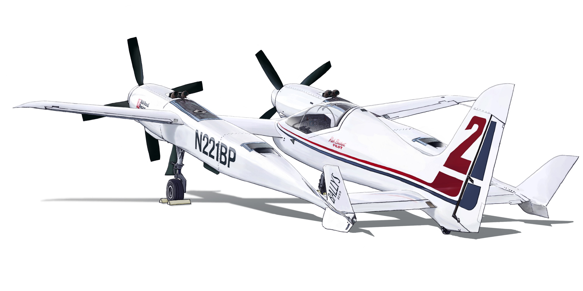 全く新しい機体による速度記録の更新と、リノでの勝利を目指すボブ・ポンドの思想を具現化するためにスケールド・コンポジッツ社が Model 158として開発したのが本機、"Pond Racer"です。同社はバート・ルータンの設計により奇妙な外観ながら革新的な航空機を作るメーカーとして知られていて、世界最初の無着陸無給油世界一週飛行を成し遂げた "Voyager"、後には高度100kmへ到達しX-Prizeを獲得した "Space Ship One"などを世に送り出しています。