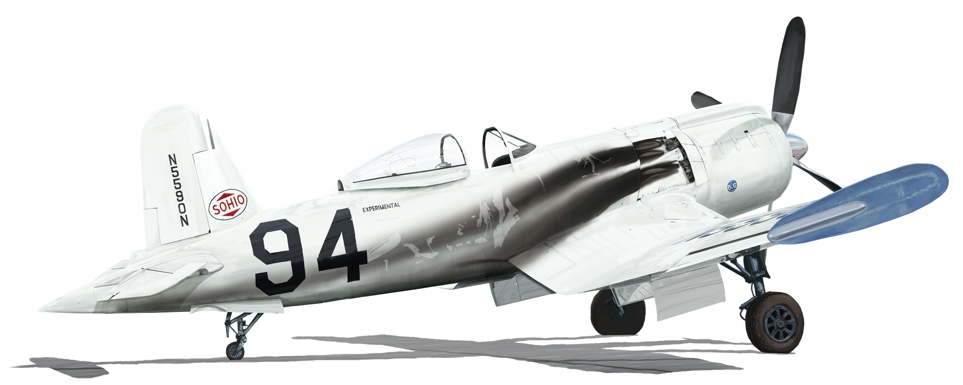 イラストの機体はクリーランドが49年のトンプソン杯で優勝した#94。 この機は5機作られた試作機 XF2G-1の中の1機で、この時には翼端を左右4フィートずつ詰めて翼端版を装着し、大型のスピナーが追加された姿になっています。レースに先立って出力増加用の過酸化水素噴射装置を搭載してテストが行われましたが思う様な結果が出ずレースでは使われませんでした。 レースのあと機体はクリーブランドの空港敷地内に野晒しで放置されたまま破損が進み、55年に空港消防隊の訓練で焼かれ失われてしまいました。