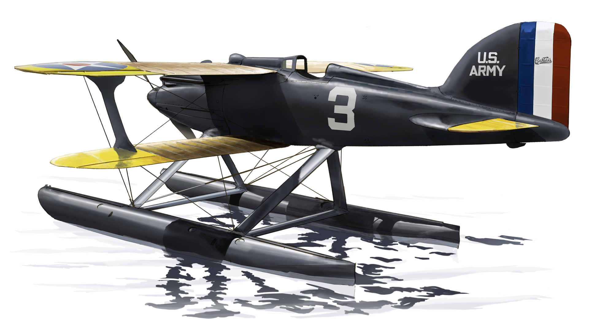 1920年代前半、一次大戦が終わり欧州では中断されていた水上機で戦う国際エアレースのシュナイダー・トロフィーが再開され、米国では陸上機で行われるピューリッツァー・トロフィーが始まり大きな人気を集めていました。 中でもカーチス・エアクラフトと米海軍の開発したレース専用機CR (陸軍呼称R-6) とその改良型R2C (同R-8) は21年から23年のピューリッツァーの上位を席巻し、同年英国ハンプシャー沖ワイト島にあるカウズで開催されたシュナイダー・トロフィーもCRの水上機型CR-3が1着2着を占める活躍を見せていました。